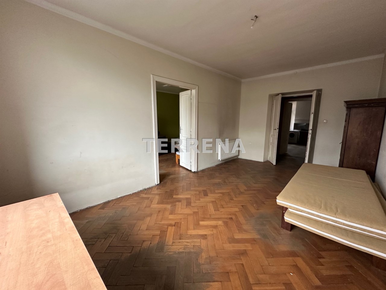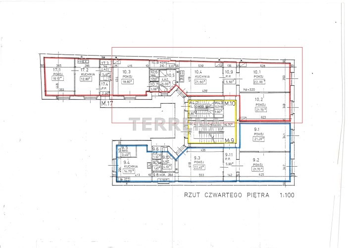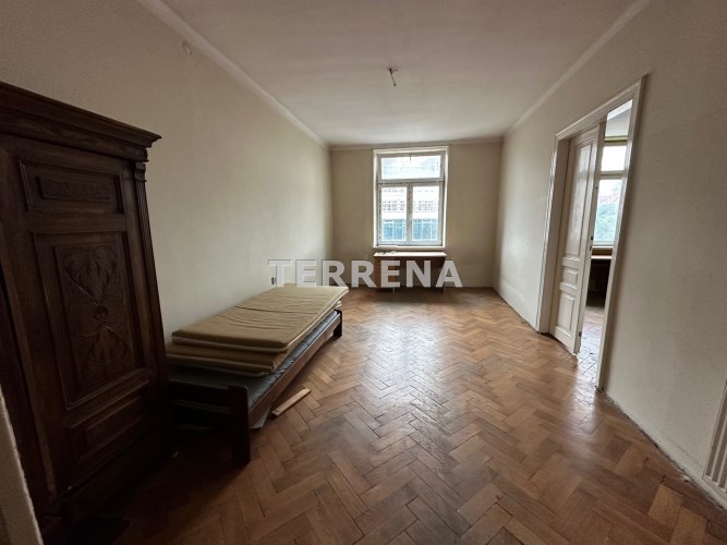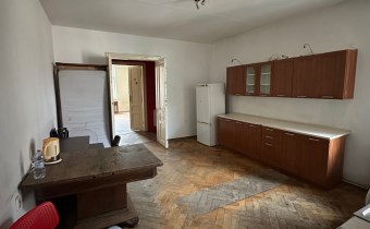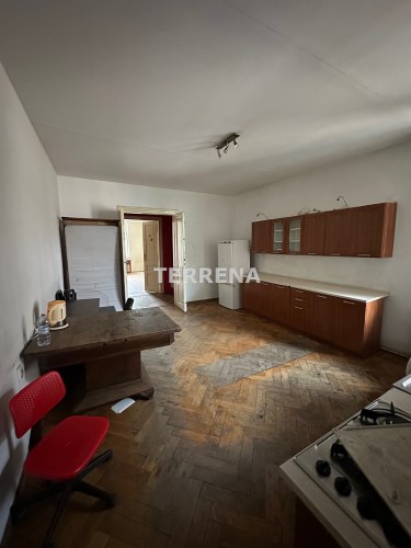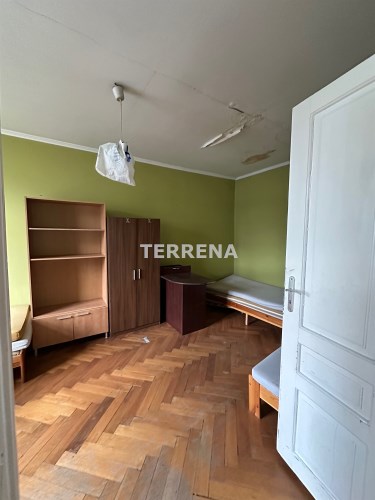 Lokal o łącznej powierzchni użytkowej 100,30 m2 składa się z 3 dużych pokoi o powierzchni (22; 21,7; 18,80 m2), dużej kuchni o pow. 21,60 m2, łazienki o pow. 5 m2, WC, spiżarki, p. pokoju o pow. 5,60 m2 oraz korytarza o pow. 3,10 m2. Mieszkanie wymaga remontu. Ogrzewanie oraz ciepła woda z pieca gazowego.